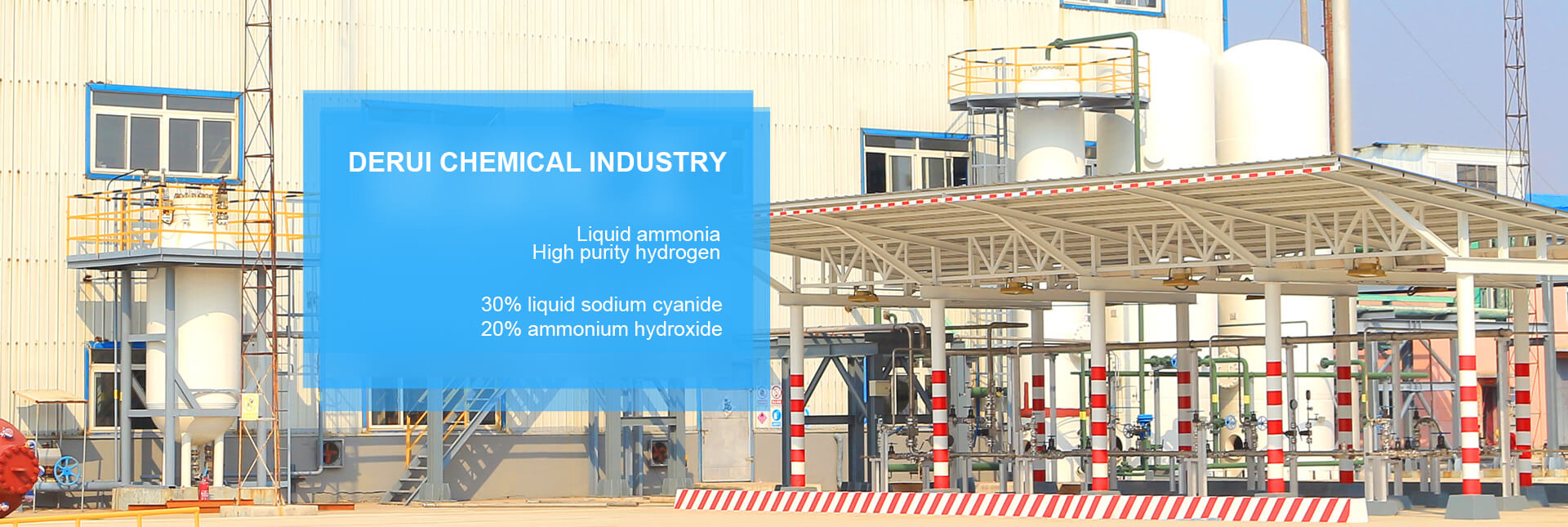 Yingkou Derui Chemicals Co., Ltd. was established on October 20, 2017 with a registered capital of 55 million Yuan. Located in No.4, Yingchuang Road, Yingkou City, Derui Chemicals is covering an area of 53,300 square meters, with more than 200 employees. Its main business is to produce and sell sodium cyanide and its derivatives, hydrogen products, liquid ammonia products and customized fine chemicals. Currently, the main products are: a variety of cyanogen containing compounds, liquid ammonia, 99.999% high-purity Hydrogen, 30% liquid sodium cyanide and liquid disinfectant (84 disinfectant).